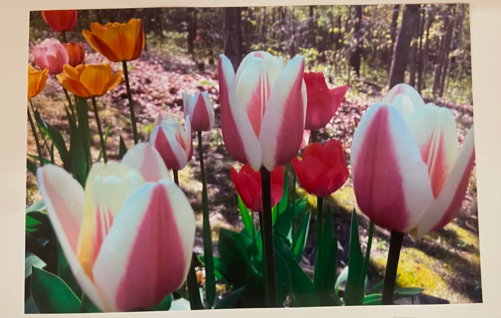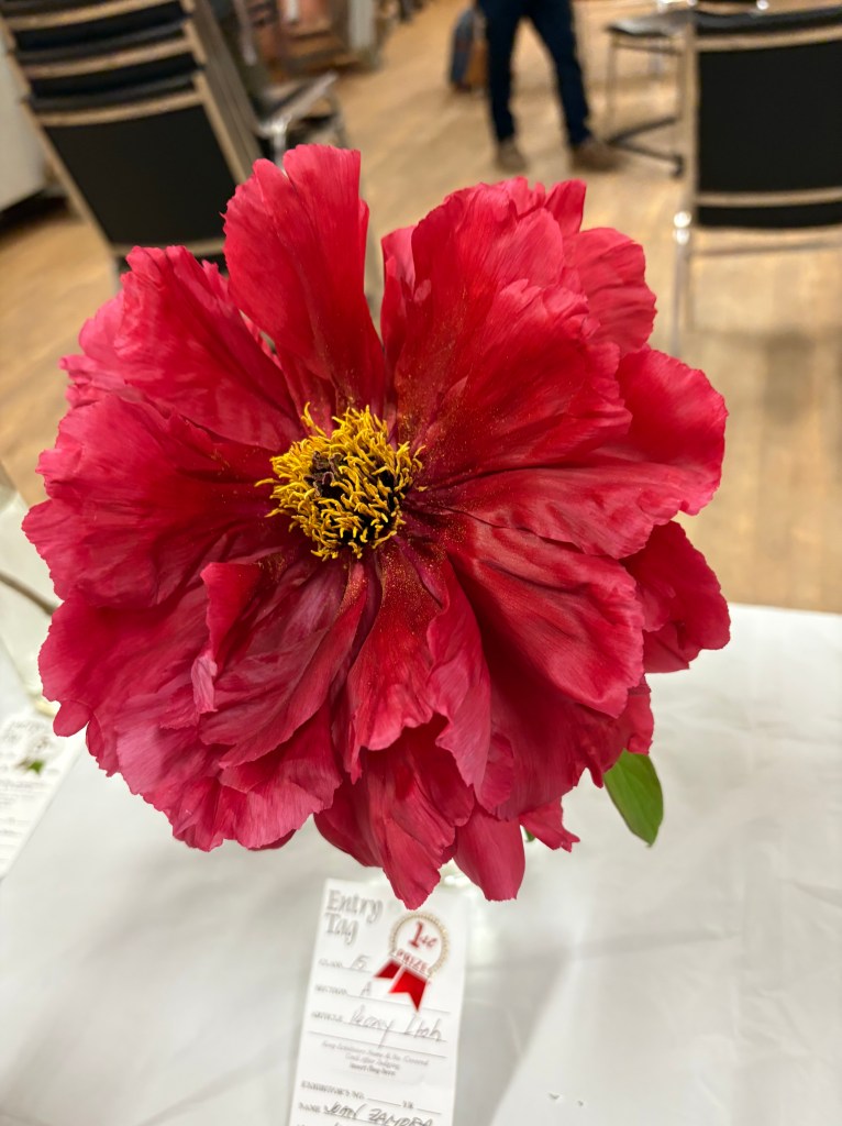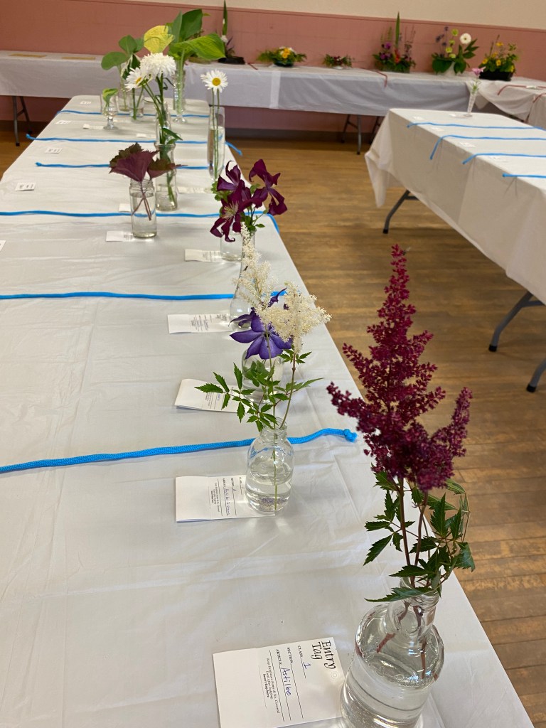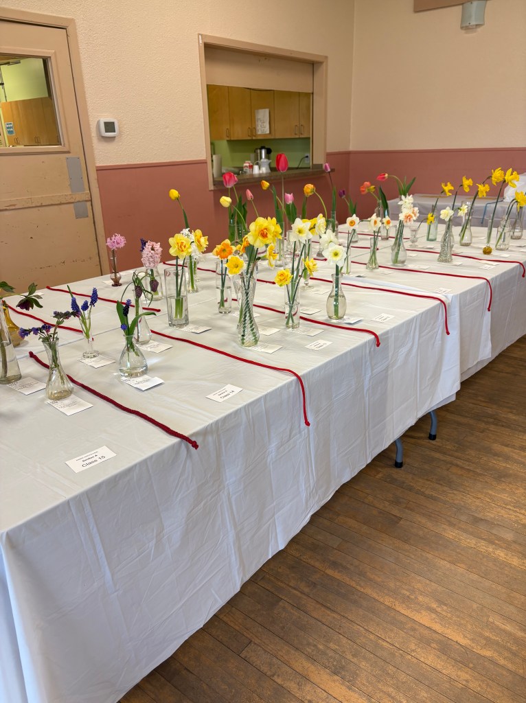 The cool spring certainly produced many lovely specimens for the May 6 “Spring Flower Show” There was a record number of entries of  Narcissus blooms in the Trumpet class. Shelley B was awarded a first for her Flowering Almond in the Flowering Shrub class, while Norma H won first for her Munchkin entry in the Design class. Lynda B won Best in Show Horticulture, in the “Any Other Tulip” class with her bi-coloured Parrot Tulip